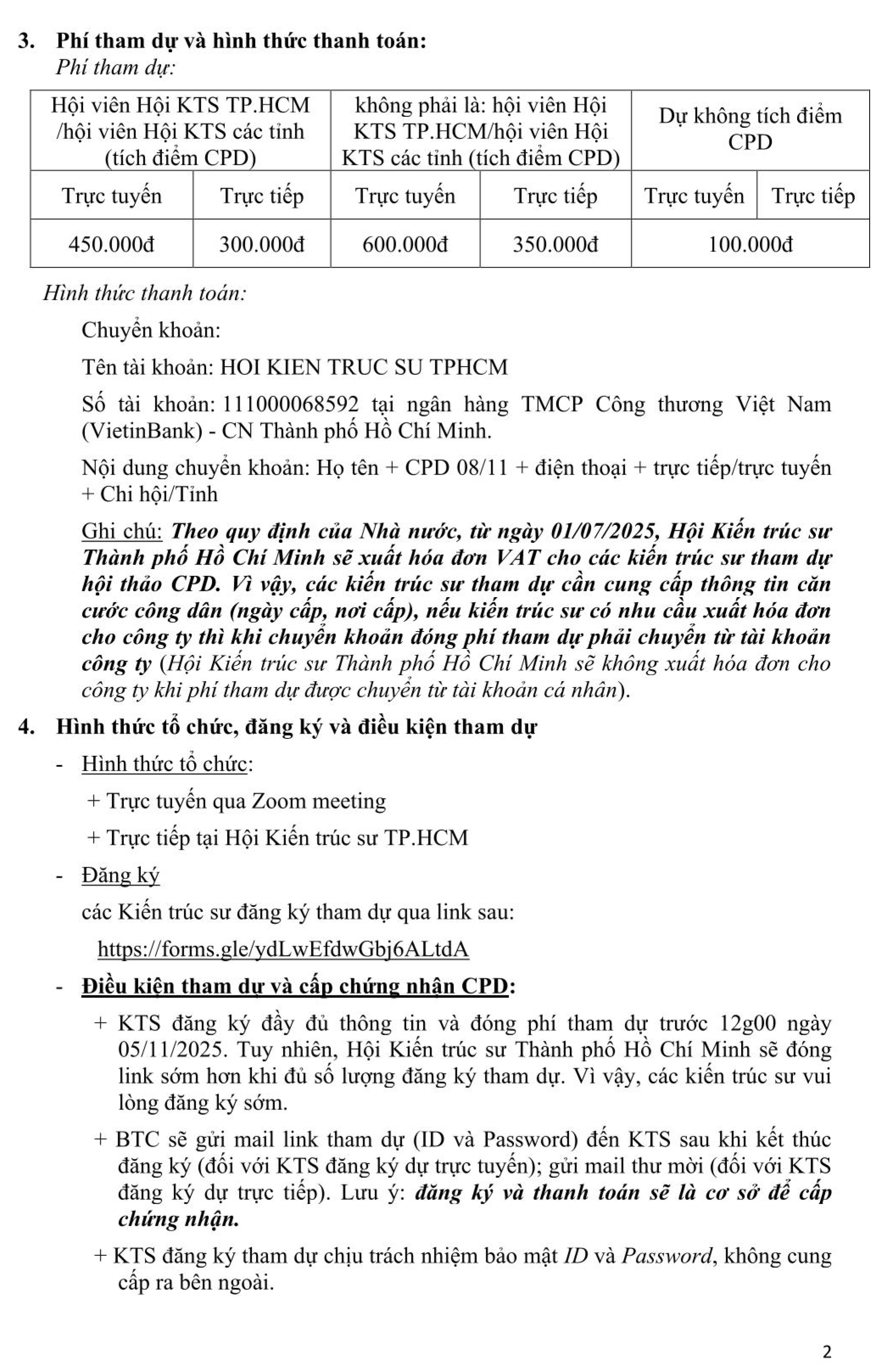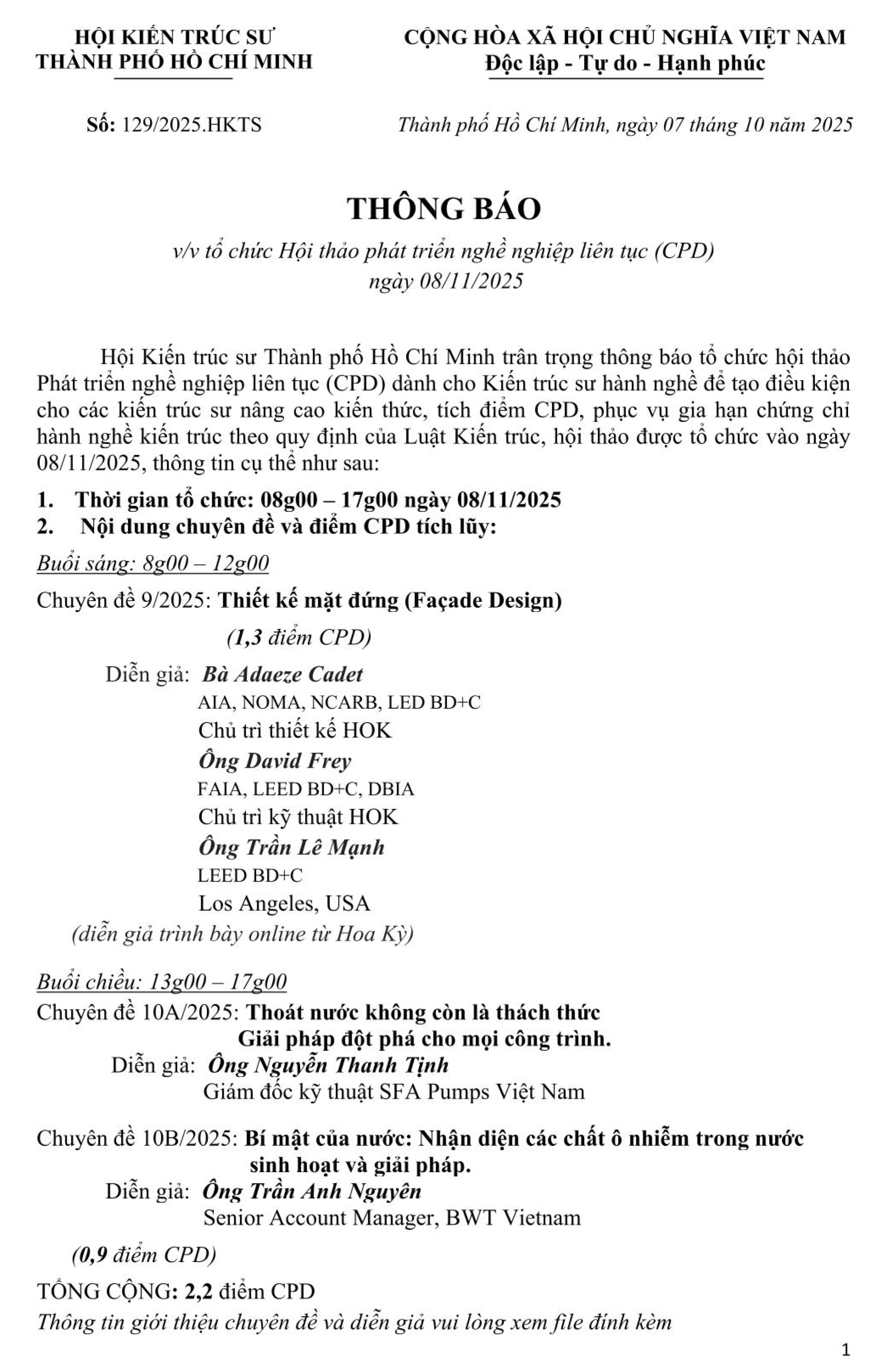 Thông báo tổ chức Hội thảo phát triển nghề nghiệp liên tục (CPD) ngày 08/11/2025 [08/10/2025]